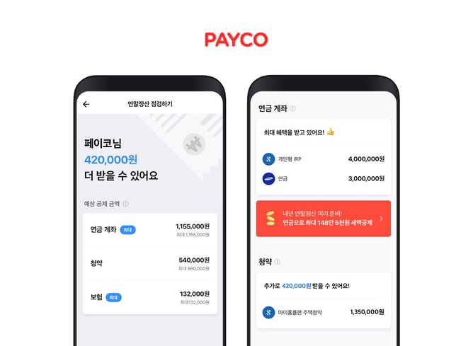 ... 공제 항목별로 개인 상황에 적합한 절세 상품도 추천 받을 수 있다. NHN페이코는 연말정산 시즌을 맞아 이용자들이 마이데이터를 활용해 개인의 절세 상황을 점검하고, 올해 절세 전략 및 내년 연말정산 계획을 세울 수 있도록 이번 서비스를 구현했다. 연말정산 점검 서비스는