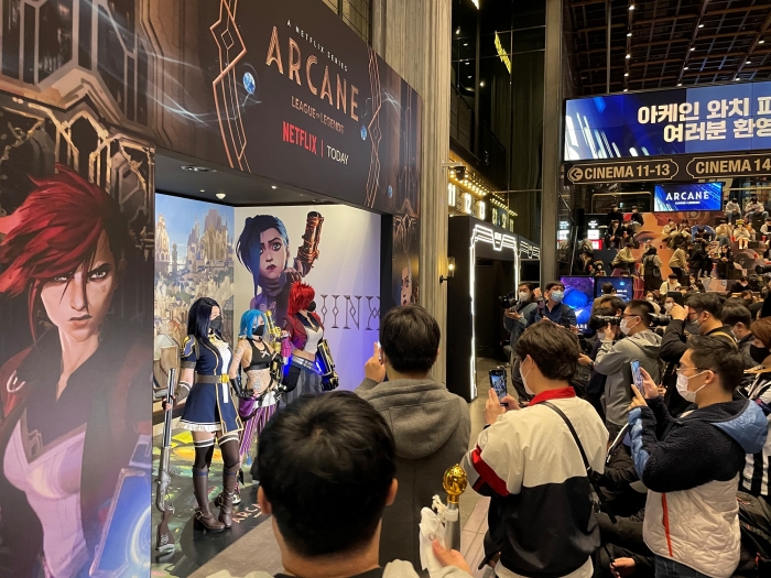 ... 아케인의 첫 에피소드는 ‘2021 LoL 월드 챔피언십’ 결승전(6일) 이후 전 넷플릭스와 트위치 동시 중계 시스템을 통해 전 세계에 공개 돼 더 큰 관심을 받았다. 또한, 7일 한국에서는 서울 CGV 용산아이파크몰에서 아케인의 팬들과 함께 1막을 감