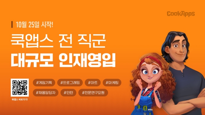 ... 쿡앱스는 북미와 유럽 캐주얼 게임 시장을 타겟으로 10년 이상 글로벌 게임 제작 노하우를 쌓아온 국내 유일한 회사이며, 캐주얼 퍼즐 게임으로도 유명하지만 최근 캐주얼 RPG, 머지 게임 시장 개척에도 적극적으로 나서 뛰어난 성과를 거두고 있다. 이번 대규모 채용에서는 장르