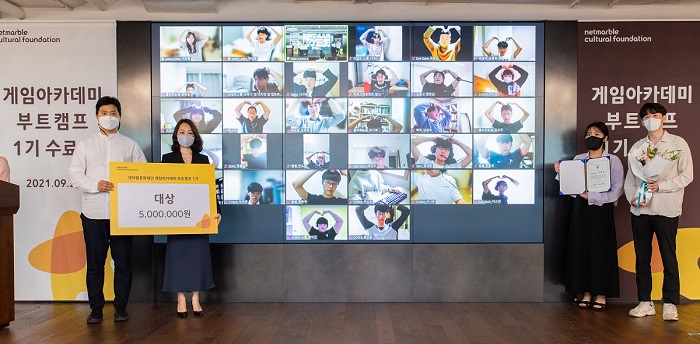 ... 코로나19 확산 방지를 위해 온라인 생중계로 진행된 이번 수료식에는 1기 게임아카데미 부트캠프 수료생 29명(8팀)을 비롯해 넷마블문화재단 이나영 사무국장, 자문위원인 숭실대학교 이재홍 교수 등이 뜻깊은 자리를 함께 했다. 넷마블문화재단 이나영 사무국장은 격려사를 통