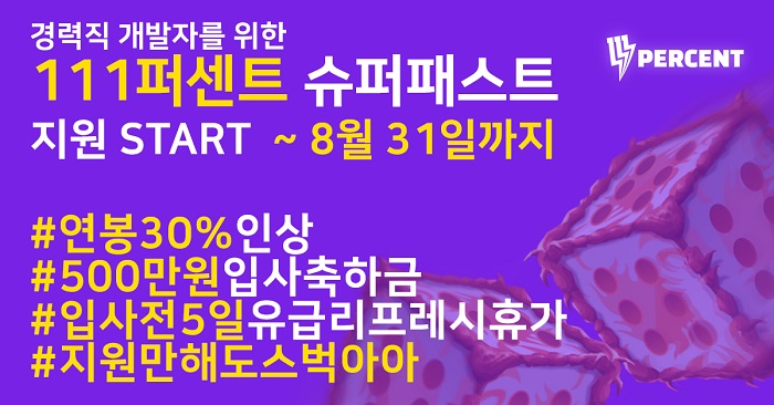 ... 이번 이벤트는 클라이언트, 서버 등 개발 직군을 대상으로 8월 한달 동안만 진행되며, 해당 이벤트 기간 동안의 지원자들은 코딩 테스트 면제, 이력서 및 자소서 제출 면제, 전체 면접 비대면 진행 등 지원자의 편의를 위한 다양한 혜택을 제공받는다. 또한, 채용이 확정될