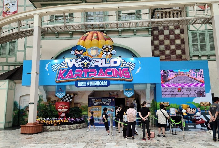 ... ‘월드 카트레이싱’은 두 가지 존으로 나뉘어 운영된다. 먼저, ‘서킷(8인) 레이싱존’에서는 경기에 함께 참여한 8인이 아이템전으로 승부를 가리게 된다. 원형 경기장 내 신나는 음악과 조명 연출은 경기에 박진감을 더하고, 운전석