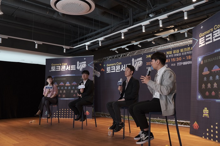 ...두번째순서에서는‘가상세계를넘어게임으로’라는주제로강원대학교김상균교수가출연하여게임이단순한놀이도구가아닌삶에어떻게적용되는지‘메타버스’와접목하여유쾌하게풀어나가는시간으로진행되었으며,세번째순서에서는전프로게이머고릴라강범현이패널로나서프로게이머를시작하게된스