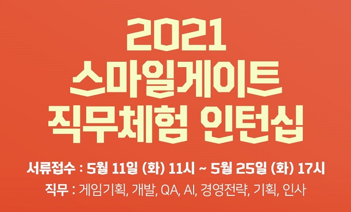 ... 지원자들은 스마일게이트 공식 홈페이지를 통해 오는 5월 25일까지 지원할 수 있으며 서류전형과 온라인으로 진행되는 실무 면접을 거쳐 6월말 최종 합격자가 발표된다. 개발 직군의 경우 서류 전형에 앞서 전공 소양 및 이론 지식을 평가하는 ‘SGDT(Smilegate D