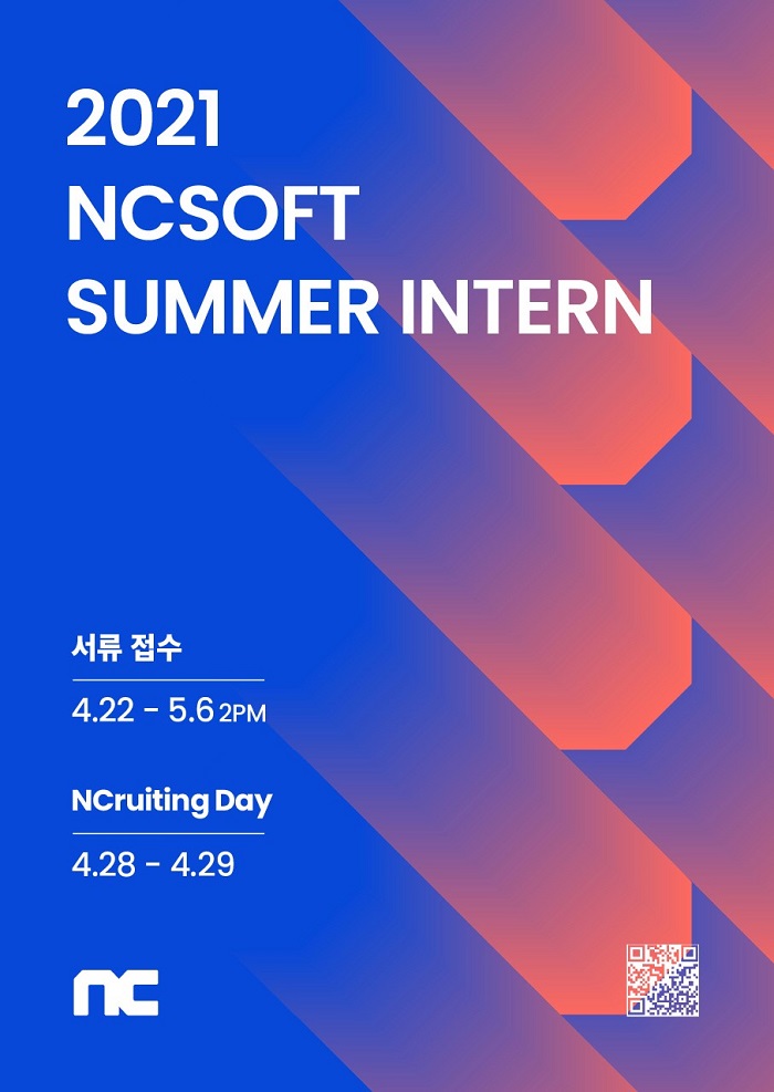 ...지원서는4월22일부터5월6일 오후2시까지 엔씨(NC)채용 홈페이지에서 접수한다. 전문학사 이상 학위 취득 예정자(2022년2월)또는 학위 보유자라면 지원 가능하다. 최종 합격자는6월말부터7주간 인턴사원으로 근무한다