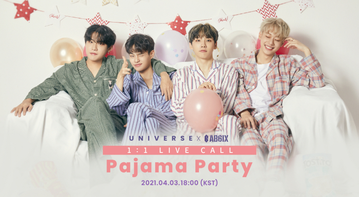 ... 모든 참가자는 AB6IX 멤버 중 1명과 영상으로 통화할 수 있다. 응모 기간은 3월 22일(월)부터 26일(금)까지다. 참가 희망자는 유니버스 앱에서 AB6IX 4명의 멤버(전웅, 김동현, 박우진, 이대휘) 중 1명을 선택해 응모할 수 있다