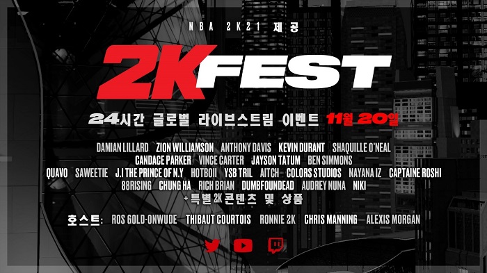 ... 이번 행사는 스포츠 해설가 로스 골드 온우드(Ros Gold-Onwude)와 FIFA 월드컵 골든 글러브 수상자이자 현역 레알 마드리드 골키퍼인 티보 쿠르투아(Thibaut Courtois)가 진행을 맡았다. 또한 NBA 2K21의 표지 선수인 데미안 릴라드(Dami