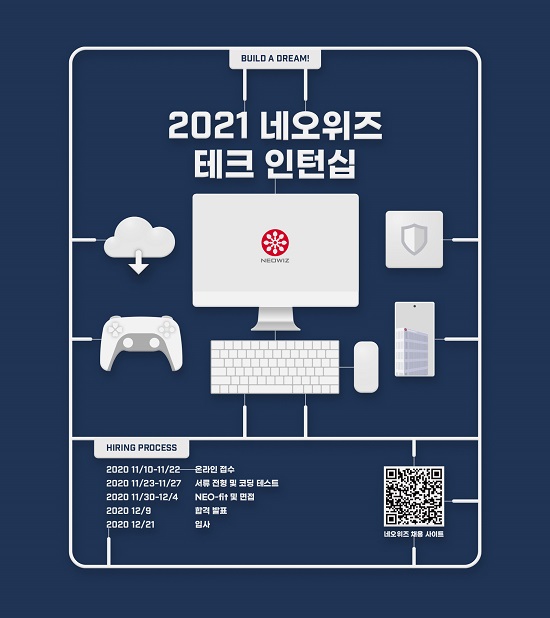... 채용 절차는 서류 심사와 코딩 테스트를 거쳐 화상 및 대면 면접 순으로 진행된다. 합격 결과는 12월 9일에 발표되며, 최종 합격자는 오는 12월 21일부터 3개월간 인턴사원으로 근무하게 된다. 임주현 네오위즈 인사팀장은 “테크 인턴십은 다양한 실무를 직