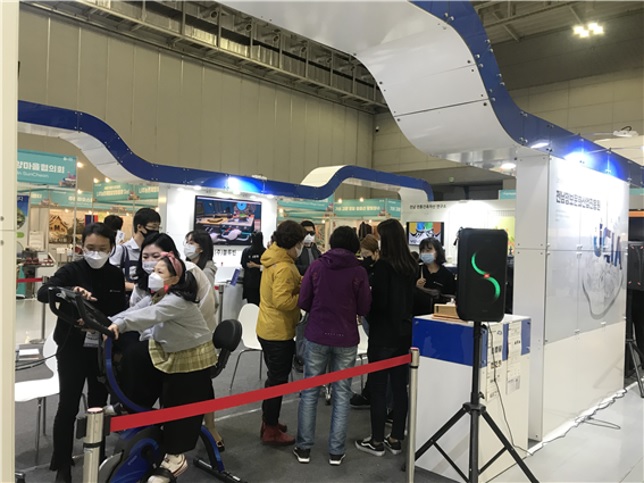 ... 큐비언즈VR은 복셀형태의 아기자기한 캐릭터가 주인공이 되어 테이블 넘어의 적들을 공격하고 방어하는 테이블 디펜스 게임으로 쉬운 조작법과 귀여운 캐릭터로 인기를 끌었다. 또한 `(주)티써프`가 선보인 헬스자전거를 이용한 `홈트레이닝 게임`은 미세먼지, 바이러스 등으로 인한