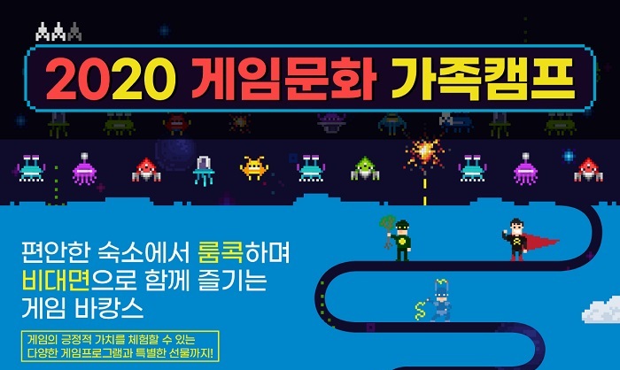 ... 올해는 코로나19 확산을 방지하고자 처음으로 오프라인이 아닌 비대면 온라인 방식으로 진행되며, 참가자들은 각자 숙소에서 준비된 게임 기기들을 이용해 안전하게 온라인으로 게임문화 가족캠프에 참여할 수 있다. 참가 가족들은 ‘게임리터러시(이해) 워크북&rsqu