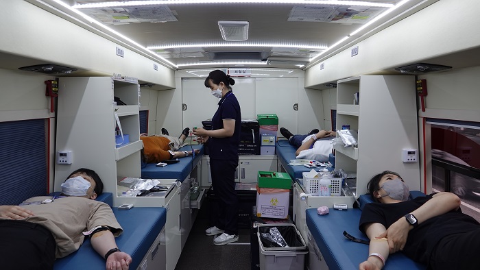... 이날 헌혈 행사는 혹시 모를 감염 예방을 위하여 손 소독, 체온 측정 등이 이뤄졌고, 사전 문진과 대면 문진 후 헌혈이 가능한 임직원들에 한해 캠페인에 참여할 것을 독려하였다. 또한, 게임위는 헌혈에 참여한 직원들이 충분한 휴식을 취할 수 있도록 특별 휴가 제도를 지원하였