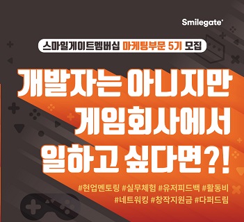 ... 또한 참가자가 창업에 도전할 경우 스마일게이트 창업 지원 프로그램도 연계해 준다. ‘마케팅 부문’의 경우 게임, 캐릭터 등 스마일게이트의 주요 IP(지식재산권)에 대한 마케팅 콘텐츠 기획 및 제작 과제가 주어진다. 스마일게이트는 참가자들에게 마케팅