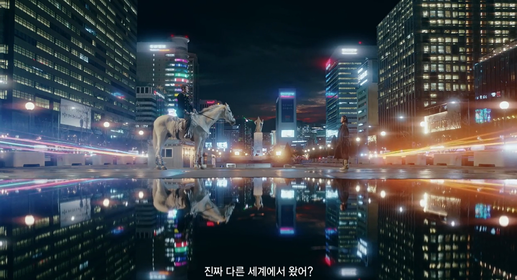 ... '진짜 다른 세계에서 왔어'라는 나래이션과 함께 백마를 타고 등장한 이민호와 그를 바라보고 있는 김고은의 모습은 마치 동화 속 한 장면 같다. '더 킹- 영원의 군주'는 차원의 문을 닫기 위해 현재로 온 대한제국 황제 이곤(이민호