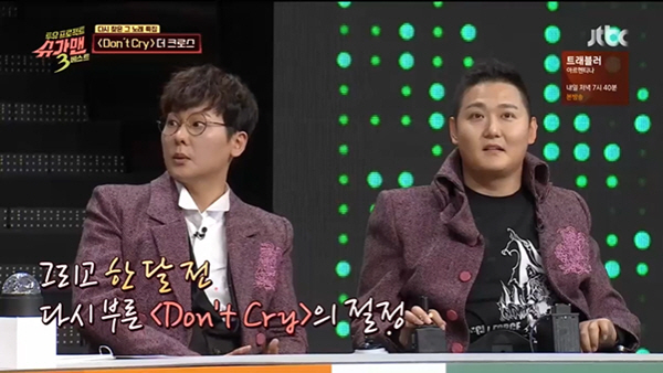 ... 사지마비 장애를 딛고 무대에 올라 더크로스의 히트곡인 '돈 크라이'를 열창하는 모습에 진행자 유재석을 포함해 관객 모두가 숨죽여 경청했다. 복식호흡로봇장치의 도룸을 받아 횡격막을 움직이면서 힘겹게 노래를 마친 김혁건은 청중의 박수 갈채를 받았다.