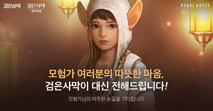 ... 이용자는 게임 내에서 '날개 없는 천사' 칭호를 얻으며 나눔의 증표 판매가 총 5백만 개를 달성하면 펄어비스가 1억원을 기부한다. 성금 1억원은 호주와 터키에 각각 5천만 원씩 현지 구호 단체에 전달되어 피해 지역 복구와 이재민 지원에 쓰일 예정이다.