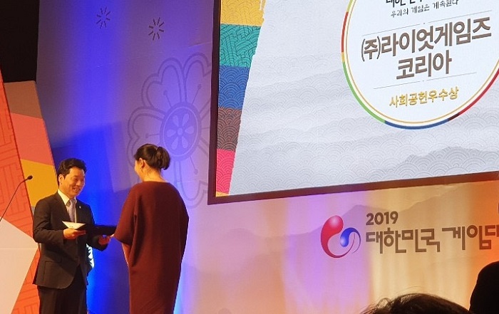 ... 라이엇 게임즈는 지난 2012년부터 약 8년 간 <한국 문화유산 보호 및 지원>을 위한 사회환원 활동을 꾸준히 펼쳐왔으며 그 공로를 인정받아 이번 상을 수상했다. 라이엇 게임즈는 앞서 2013년에도 대한민국 게임대상을 통해 '사회공헌 우수기업상'을