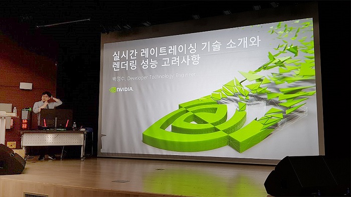 ... 세미나는 판교에 근무 중인 현직 개발자들, 특히 게임 개발자들이 많이 참석하였으며, 게임 개발에 관심을 가지는 관련 학과의 대학원생, 대학생들도 세미나에 참석했다. 세미나 1부를 진행한 박정수 차장은 무대에서 고화질 레이트레이싱 기술에 대한 강의를 통해 다양한 레이 트레이