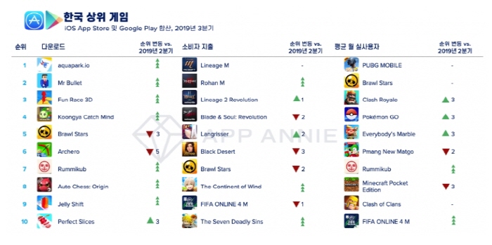 ... 또한, 하이퍼 캐주얼 게임을 즐기고, MMORPG 장르에 가장 많은 돈을 지출하는 것으로 조사됐다. 한국 상위 게임 앱 순위 = 이오스컴 제공 한국 상위 게임 앱 순위를 살펴보면 VOODOO가 배급하는 ‘아쿠아파크(aquapark. io)’가