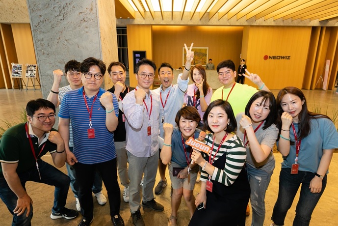 ... 직원들이 계단 오르기에 동참할 경우 회사에서 기부를 진행하며, 네오위즈판교타워 1층부터 11층까지 한 번 완등할 때마다 최대3만 원을 기부할 수 있다. 5월 28일 창립기념일 당일에 진행된 이번 계단 오르기 행사는 팀, 개인 단위로 총 530여명의 직원이 참가했으며