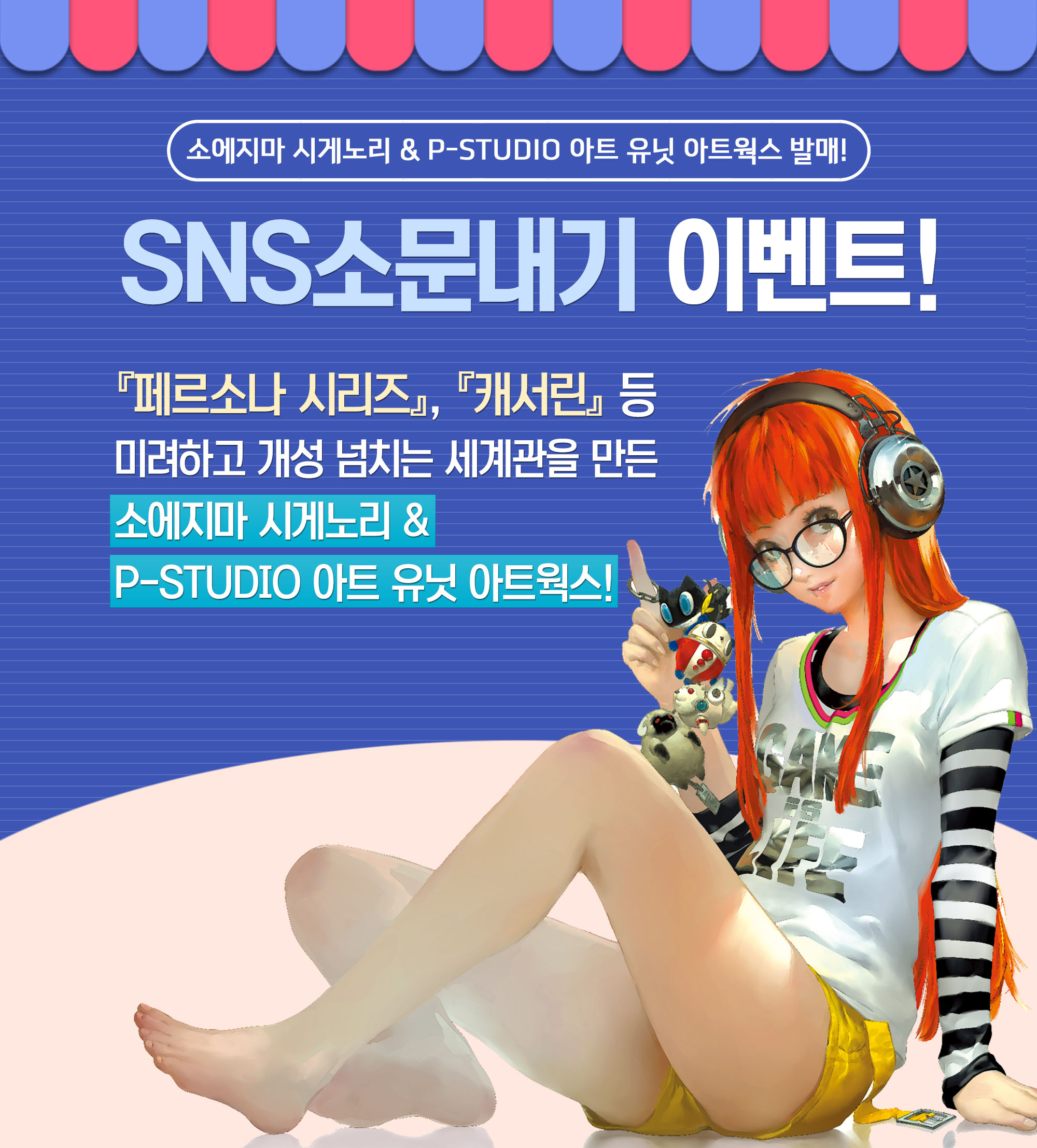 ... 이벤트 게시글 링크와 함께 ‘#소에지마시게노리, #플레이원스토어, #페르소나, #캐서린’등의 해시태그를 게시 뒤 URL을 이벤트 페이지 댓글란에 남기면 자동 응모되며 ‘소문내기 이벤트’에 참여한 고객을 대상으로 추첨을 통해 ‘PS4 캐서린 풀 보디 한정판’과 ‘소에지마 시게노리