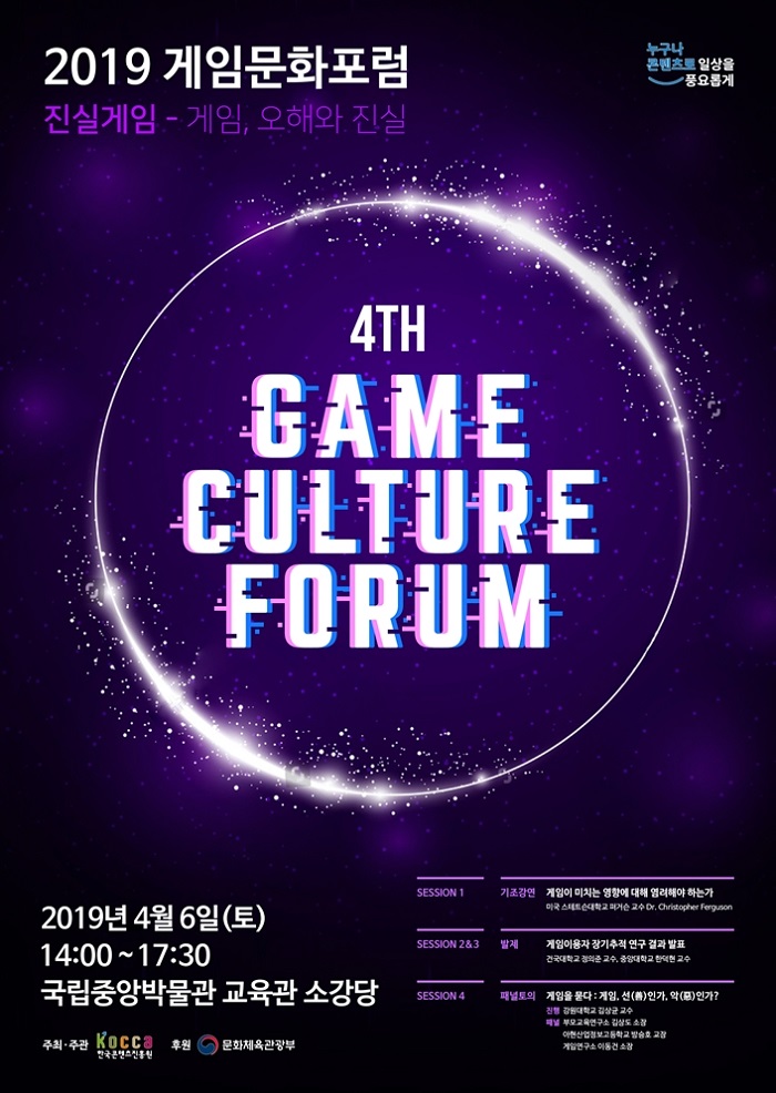 ... 기조강연에 나서는 미국 플로리다 스테트슨 대학교 크리스토퍼 퍼거슨(Christopher Ferguson) 정신의학과 교수는 <근거 없는 믿음과 사실, 그리고 도덕적 공황(Moral Panic) : 게임이 미치는 영향에 대해 염려해야 하는가?>를 주제로 비디오 게임