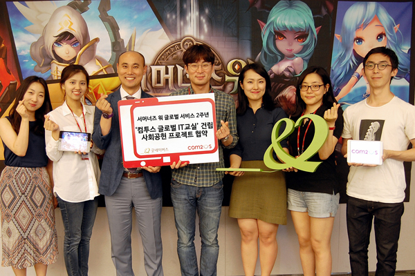 ... 이번 프로젝트로 컴투스가 조성한 기금 3000만원은 굿네이버스에 전달돼 교육 및 IT시설이 부족한 해외 저개발 지역 어린이들을 위한 IT교실을 만드는 데에 사용될 예정이다. 한편 컴투스는 이번 글로벌 IT교실 건립을 비롯해 유저와 함께하는 글로벌 사회공헌 프로젝트와 사내