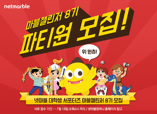 ... 마블챌린저는 게임을 좋아하고 소셜미디어와 콘텐츠 이해도가 뛰어난 대학생(휴학생•재학생•졸업예정자)이면 누구나 지원할 수 있고 서류접수는 오는 18일까지며 서류심사와 면접을 통해 총 10명을 선발한다. 특히 게임업계 진로를 희망하거나 소셜미디어와 디자인, 영상 편집에 능숙한 학
