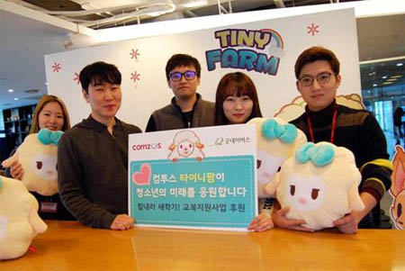 ... 이 회사는 자사의 인기 SNG(소셜네트워크게임) '타이니팜'의 대표 캐릭터인 '벨양' 쿠션을 임직원에 판매해 기부금을 조성했다. 이 기부금은 국제구호개발 NGO 굿네이버스(회장 이일하)가 진행하고 있는 힘내라 새학기 캠페인에 전달돼 국내 저소득 가정 학생들에게 교복과 학