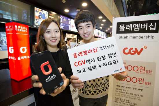 ...또 전국 CGV 75개점에 ‘올레멤버십 전용 발권 창구’를 운영, 올레멤버십 고객들이 보다 빠르고 편리하게 현장에서 영화표를 구매할 수 있도록 한다. 강이환 KT 마케팅부문 제휴추진담당 상무는 “올레멤버십 고객이 자주 찾는 CGV에서 차별화된 혜택과 서비스를 경험할 수 있도록 이번