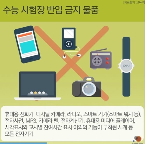 ... 특히 웨어러블 기기가 본격적으로 상용화된 올해부터 스마트 워치(삼성 갤럭시 기어, 소니 스마트 워치, 페블 스마트 워치 등)가 새롭게 반입금지 물품에 추가됐다. 최근 출시된 스마트워치의 경우 자체 통신은 물론, 전화, 문자 송·수신, 모바일 메신저, 카메라 등 다양한 기능을 탑