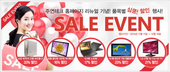 ... 우선 데스크탑의 경우, 저가형 셀러론 제품이 아닌 i3-4160 CPU가 탑재된 고급형 제품을 39만9,000원에 제공한다. 또 10인치 태블릿PC J-TAB2 제품을 29만9,000원에 판매한다. 이외에도 다양한 상품을 최고 33%까지 할인된 가격에 제공할 예정이며, 추첨을