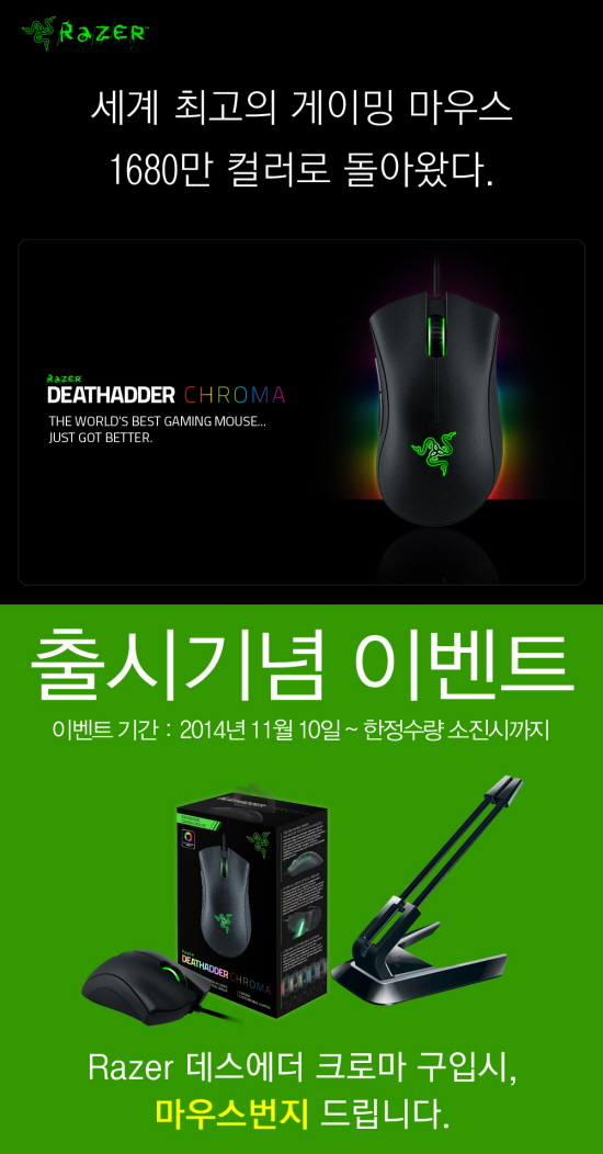 ... 또 레이저 시냅스의 통계∙히트맵 기능을 통해 모든 활동들이 테이터화돼 자신의 게이밍 스타일 확인이 가능하다. 여기에 시냅스를 통해 1,680만 가지 색상과 다양한 패턴을 제공하는 크로마 기능은 사이클링, 패턴, 특정색상으로 세팅이 가능하다. 플레이어의 상황에 따라 색상을 바꾸는