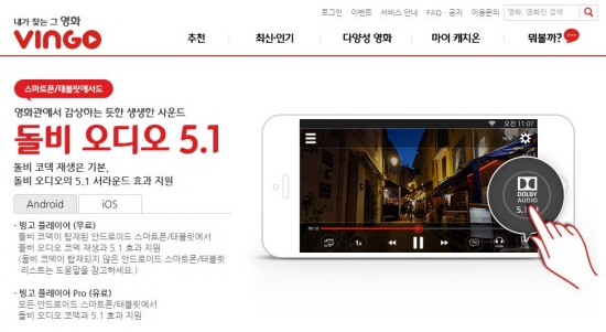 ...1 서라운드 사운드를 느낄 수 있다. 또 빙고에서 구매한 영화 콘텐츠뿐만 아니라 돌비 오디오 코덱을 사용한 콘텐츠를 모두 5. 1채널 서라운드 음향으로 감상할 수 있다