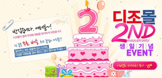 ... 할인쿠폰은 13일부터 지급될 예정이다. 또 디조몰 내 이벤트 페이지에 ‘2주년 축하메시지’를 남기면 추첨을 통해 애플 아이패드와 올림푸스 디지털카메라, 노비타 선풍기 등 다양한 현물 경품을 증정한다. 최저가에 대한 자신감을 앞세운 ‘최저가가 아니면 5,000원 추가 할