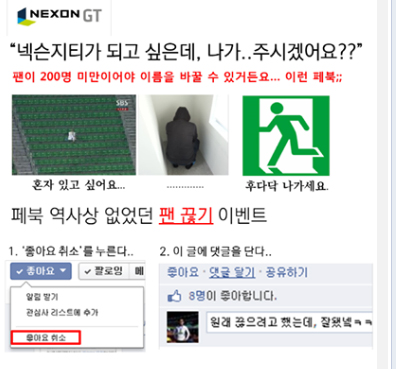 ... 이유는 페이스북 정책상 200개 이상의 좋아요가 있으면 페북 이름을 바꿀 수 없기 때문이다. 전신인 게임하이에서 이름을 바꿀 것으로 생각도 못했던 상황에서 넥슨지티로 문패를 바꿨으나 페이스북 이름은 여전히 게임하이에 머물러 있다. 이 때문에 넥슨지티는 일부러 좋아요를 취소하