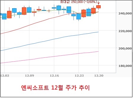 ... 실제로 블레이드앤소울 론칭 기대감으로 2012년 4월 한때 32만원까지 올랐던 주가는 같은해 5월 20만원대 초반까지 추락했다. 블레이드앤소울과 길드워2 국내 및 북미 론칭과 흥행이라는 호재에도 불구하고30만원선을 넘어서진 못했다. 특히 블소와 길드워2 론칭과 흥행 실적이 발