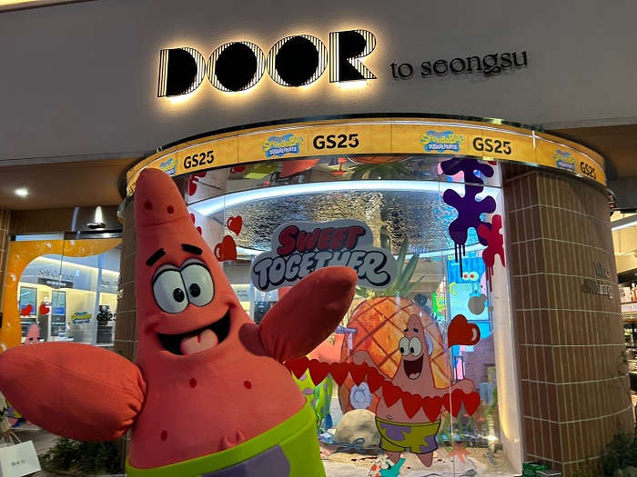 ... 새로 출시된 스폰지밥 굿즈에는 캐리어, 머그, 마우스패드, 태블릿 파우치 등이 있다. GS25 프리미엄 플래그십 매장인 ‘도어투성수’에서는 지난 1월 31일부터 2월 28일까지 약 두달여간 스폰지밥과 뚱이 탈인형과 포토존 등 다양한 현장 이벤트가 마련