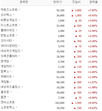 ...43%, 바른손게임즈 3. 05%, 이스트소프트 2. 85%, 플레이위드 2