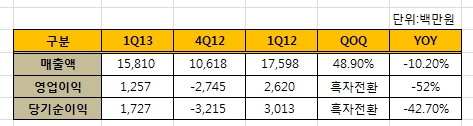 ... 올 1분기 당기순이익은 17억 2700만원으로 전년동기대비 42. 7% 감소했다. [이승진 기자 Louis@chosun