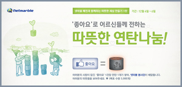 ... 이런 넷마블의 사회공헌은 게임을 즐기는 유저들에게도 이어졌다. 넷마블 스페셜포스2의 유저들은 지난 10월 독도수호대 발대식을 계기로 봉사부대를 계획하고 있다. 특히 봉사부대 명칭 공모전에는 900여 명이나 참여한 결과 '스포2 사랑보급대'라는 이름이 정해지고 조만간 스페셜