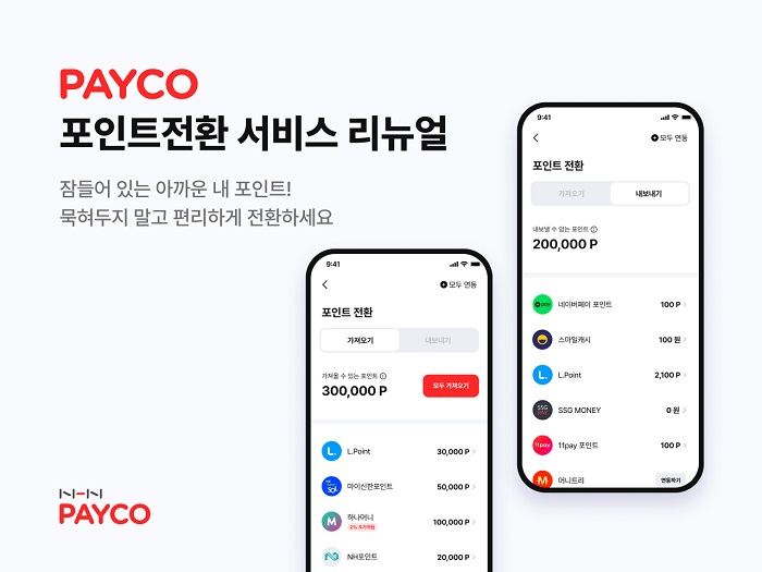 ... 페이코는 포인트 전환 서비스 내 모든 제휴사들을 한번에 연동하고 전환할 수 있는 간편기능을 추가해 편의성을 도모했다. 탭 내 상단의 ‘모두 연동’ 버튼을 누르면 원하는 제휴사들을 한번에 연동할 수 있고 ‘모두 가져오기’ 버튼은 클
