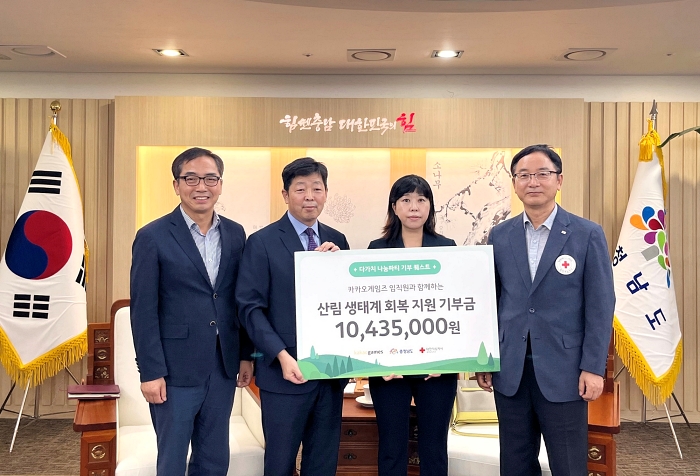 ... 해당 기부금은 임직원들이 모금한 기부금에 회사 매칭 기부금이 추가되는 방식으로 모였으며, 충남 적십자사로 전달돼 피해 지역의 나무 심기 등에 쓰일 예정이다. 카카오게임즈 관계자는 “6월 ‘환경의 달’과 연계해 충남 지역 산림 회복에 기부를