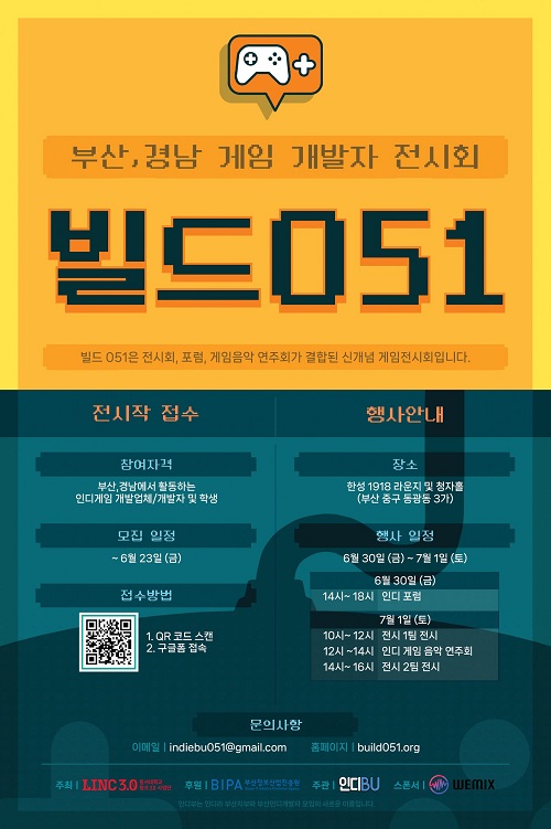 ... 6월 30일은 다양한 인디개발자들의 인디게임 관련 강연과 토크쇼가 진행되며 개발자들간의 네트워크 파티가 있을 예정이며 7월 1일의 경우 부산,경남지역 인디게임들의 게임 전시회와 게임 음악 연주회 등이 있을 예정이다. 인디 게임 개발자들이 주축이 되어 준비한 행사이기에