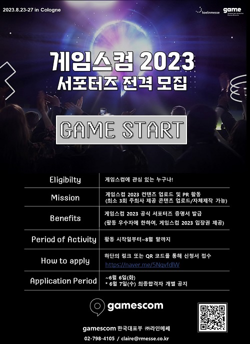 ... 최종 선발된 인원은 게임스컴 개최 시기인 8월 말까지 게임스컴 PR 활동을 하게 된다. 게임산업 분야 취업을 준비하는 학생들에게는 더할 나위 없는 기회이다. 전세계 게임 업계의 동향을 파악하고, 마케팅 경험까지 쌓을 수 있다