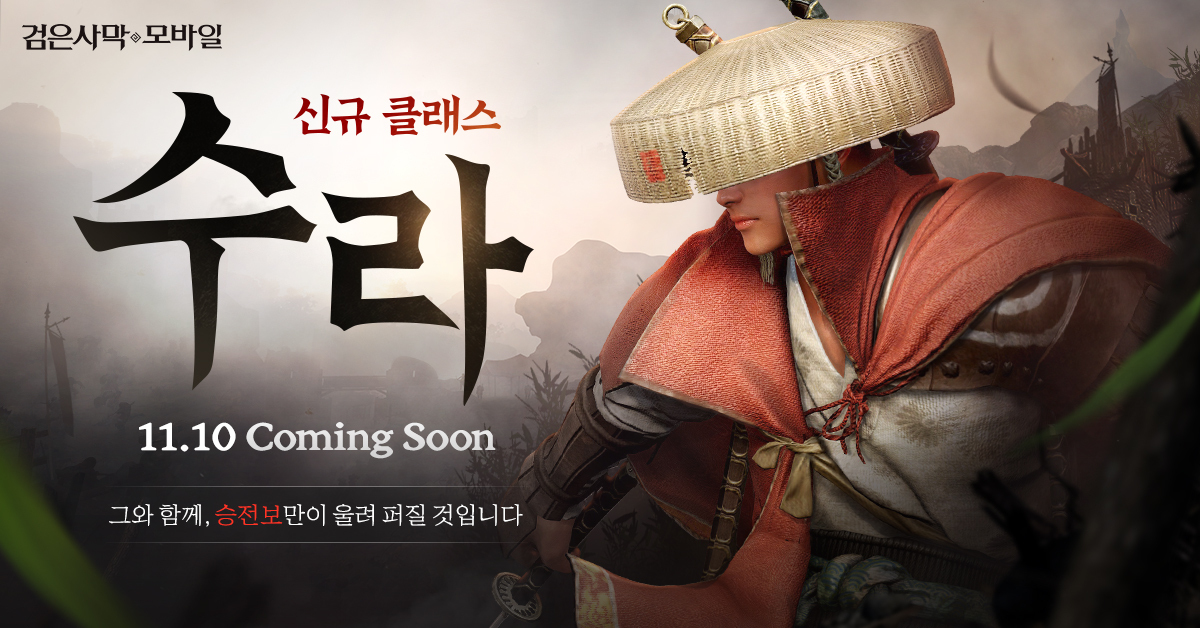 ... 수라 티징 영상에는 수라도의 일부 모습과 ‘그와 함께, 승전보만이 울려 퍼질 것입니다’ 문구가 등장한다. 검은사막 모바일 할로윈 이벤트를 진행한다. 할로윈 분위기로 마을을 단장하고 신규 의상을 추가했다