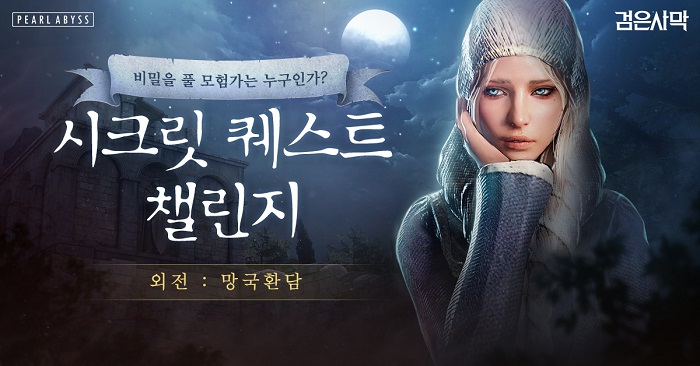 ... 챌린지 완료 시 명예와 보상도 얻을 수 있다. 지난해 오픈 당시 글로벌 이용자들이 직접 공략에 대한 공유 문서를 만들어 함께 즐길 정도로 인기를 얻었다. 검은사막을 즐기는 150여개 국가 이용자는 오후 10시(한국 시간 기준) ‘시크릿 퀘스트 챌린지 외전 :