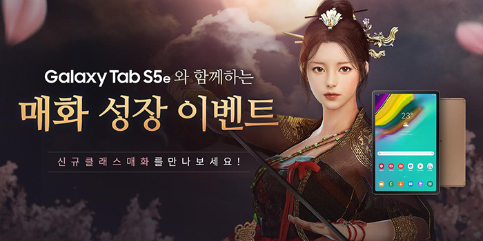 ... ‘매화’ 클래스가 가장 높은 레벨을 달성한 이용자(30명)와 이벤트 기간 동안 가장 많은 ‘매화’를 획득한 이용자(20명)에게 갤럭시탭 S5e 스페셜 패키지를 지급한다. 이용자는 매화 레벨 25/45/55/65 달성에 따라 총 1400개의 블랙펄도 받는다. ‘매일 응모 이벤트’
