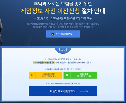 ...기존 다음게임 및 네이버 채널링을 통해 검은사막을즐겨왔던 이용자는 게임 정보 이전 신청을 통해 펄어비스의 검은사막 공식홈페이지에서 게임을 접속하게 된다. 게임 정보 이전 신청은 간단하다. 다음게임 및 네이버 채널링을 통해 검은사막을 플레이해왔던 이용자는 검은사막 공식홈페이지의