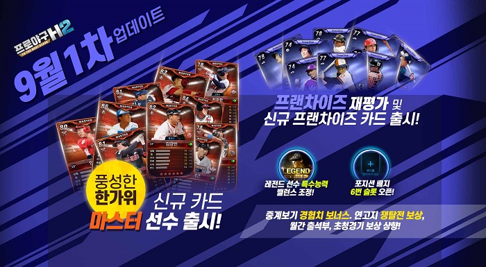 ... 이용자는 재료 카드와 특수 능력을 사용해 마스터 카드를 제작할 수 있다. 마스터 카드는 모든 구단과 연도 배지의 강화 효과가 적용된다. 마스터 타자 전용 유학지인 ‘아문센-스콧 기지’도 추가해 선수를 빠르게 성장시킬 수 있다