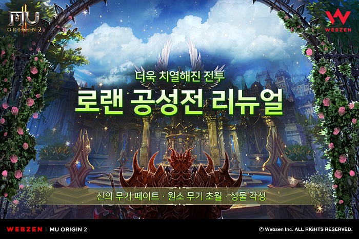 ... 동시에 기존 콘텐츠에 새로운 기능을 더한 '신의 무기 확장'과 '원소 무기 초월' 등도 공개한다. 그동안 '로랜 공성전'에서는 '용의 탑'을 점령하고, 전투를 치러 획득한 포인트에 따라 승리 길드가 결정됐다. 리뉴